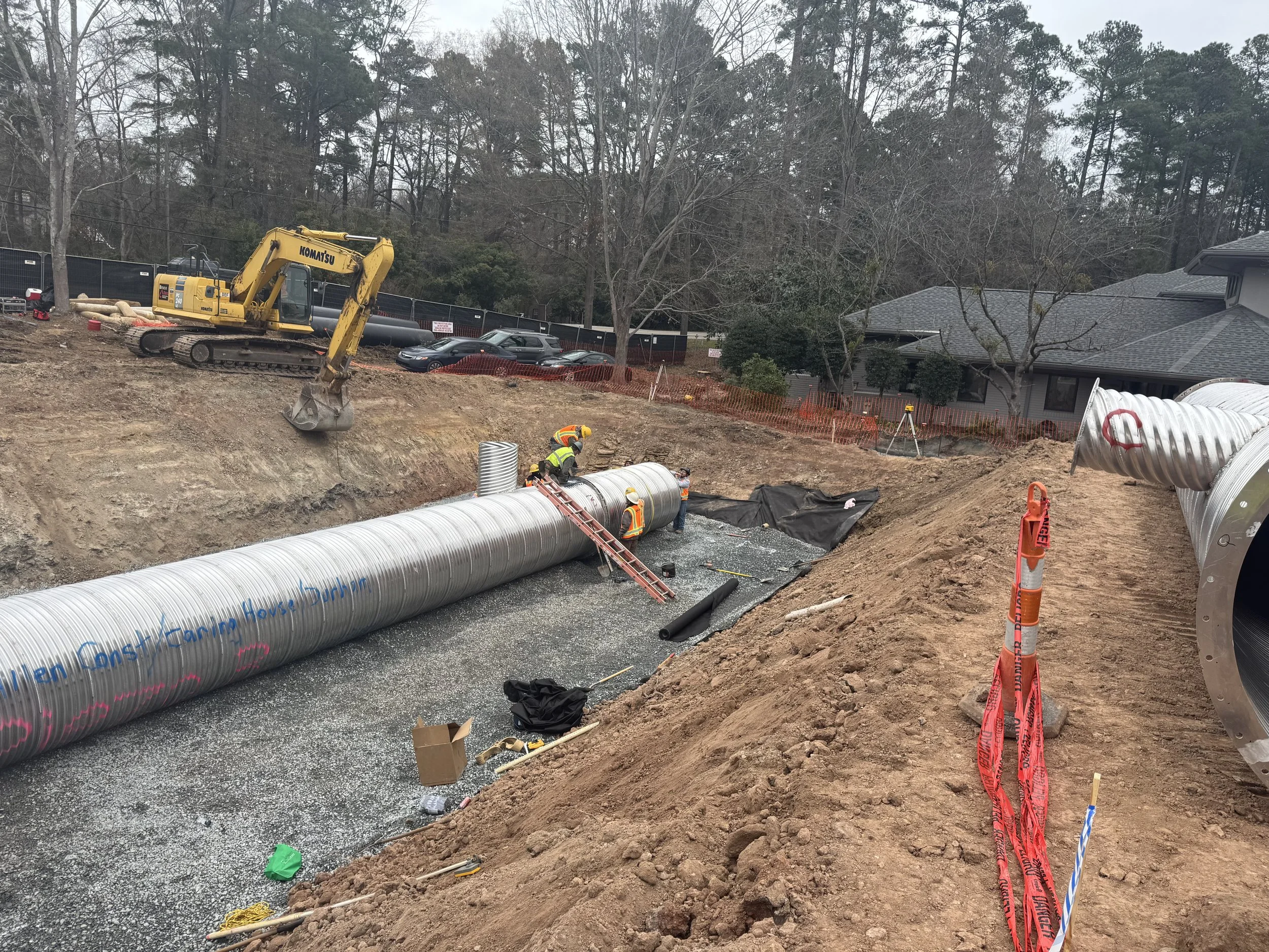 Frank Land Design served as the civil engineer and landscape architect of record, providing services from early site plan updates through permitting, construction documentation, and construction administration. Our scope included civil site design, stormwater and erosion control, fire flow and hydraulic analysis, pump station evaluation, and code-compliant landscape and tree preservation planning.